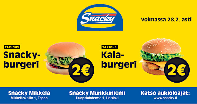 Nyt on mahtitarjoukset Mikkelän ja Munkan Snackyllä! Snacky Burgeri tai…