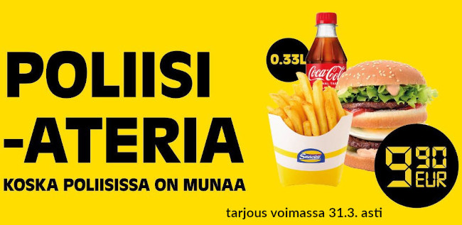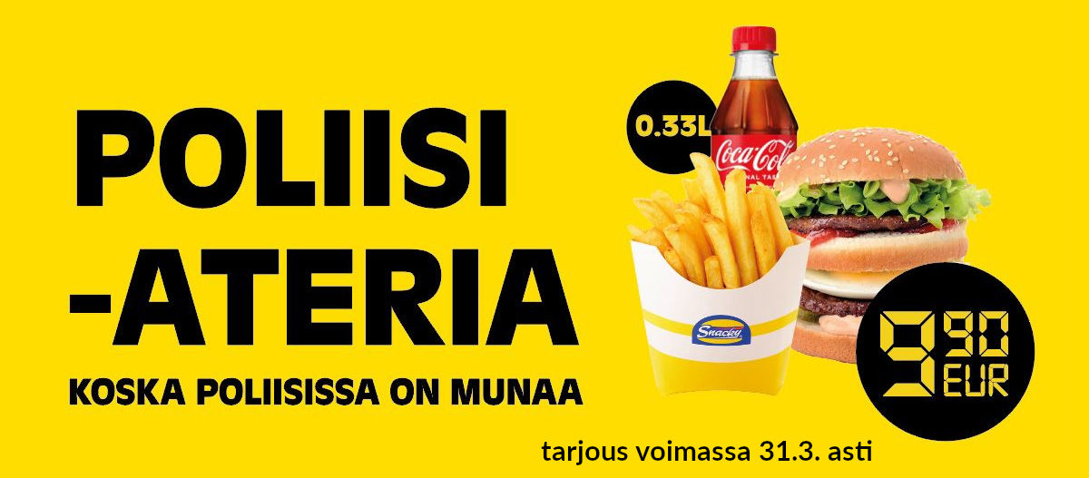 Nimittäin Poliisiateria on nyt vain €9.90! Ateria sisältää Snackyn kuuluisan…